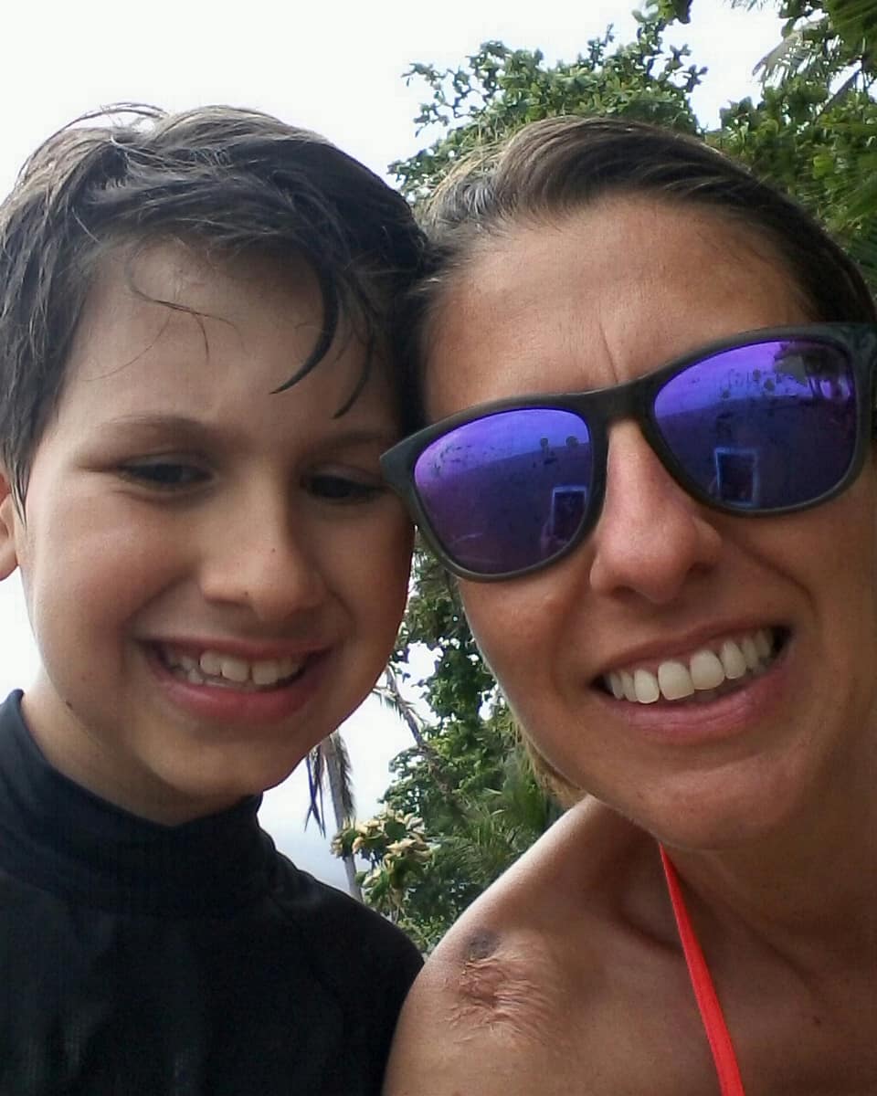 I started practicing yoga on the beach to gain full mobility in my right arm, day after day I was able to swim, dive, surf, run work, and have a baby!